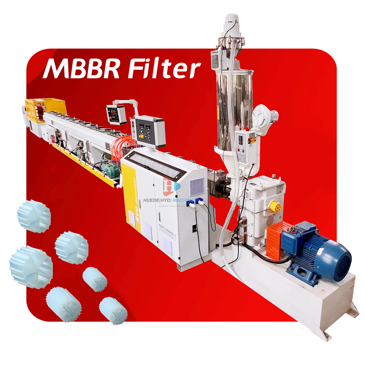 MBBR Bio Filler Extrusion Line 1) Partial denitrification by external return sludge; A small part of the wastewater to be treated by biochemical treatment enters the pre anoxic tank through the one point inlet channel, while the external return activated sludge from the subsequent secondary sedimentation tank treatment unit enters the pre anoxic tank through the external return channel. The organic matter in the influent of the one point inlet channel and the carbon source degraded by internal respiration are used in the pre anoxic tank to denitrify the NO3 -- N brought by the reflux activated sludge; 2) In anaerobic phosphorus removal, most of the wastewater to be treated goes into the anaerobic tank through the two-point inlet channel. Without dissolved oxygen and NO3 -- N, the phosphorus accumulating bacteria in the anaerobic tank can absorb the easily degradable organic matter brought in by the two-point inlet channel by using the energy stored in the body and store it in the form of PHB; In the subsequent activated sludge aerobic tank and MBBR sludge membrane aerobic tank, the phosphorus accumulating bacteria can oxidize and metabolize the PHB stored in the body by molecular oxygen or combined oxygen, and generate energy, so as to absorb excessive phosphate from sewage, and the excessive phosphorus accumulating bacteria will be discharged into the biological pool along with the discharge of excess sludge to achieve the purpose of biological phosphorus removal 3) During anoxic denitrification, the effluent from the anaerobic tank enters the anoxic tank. At the same time, the internal return nitrification liquid from the internal reflux device of MBBR flows into the anoxic tank through the internal return channel of nitrification liquid. Denitrifying bacteria in the activated sludge can make full use of the easily degradable organic matter in the influence for denitrification and denitrification, so as to remove NO3 --N in the internal return nitrification liquid, so as to achieve the purpose of deep denitrification. MBBR Bio Carrier Filter Machine