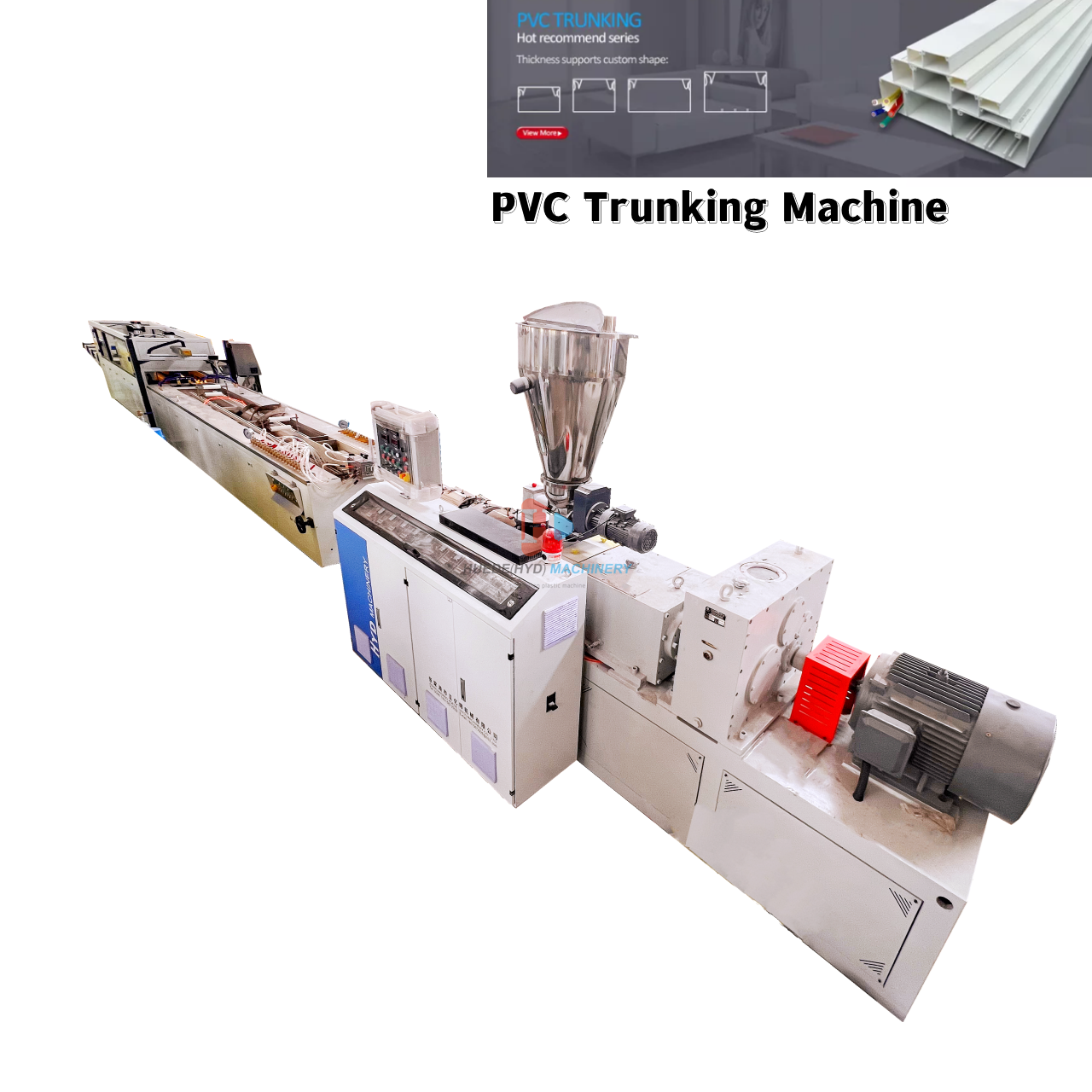 1.Plastic Trunking Profile Making Machine is used to produce PVC Trunking ,it also can make other pvc profile,just need to change the suitable mould.