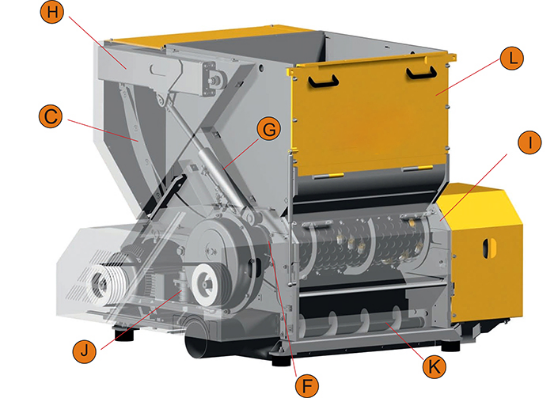 | Model | Power(kW) | Shredding Width(mm) | Rotation Diameter(mm) | Rotation Speed(rpm) | Machine Diameter(LWH)(mm) |